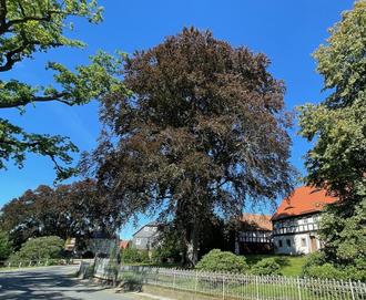 Die stattliche Rotbuche vor dem Dorfgemeinschaftshaus galt bisher als Naturdenkmal und wurde von der Unteren Naturschutzbehörde des Landkreises gepflegt und regelmäßig untersucht. In den letzten Jahren zeichnete sich bereits ab, dass durch den Pilzbefall im Wurzelwerk der Baum angegriffen ist. Bei der letzten Kontrolle wurde nun festgestellt, dass die Stand- und Bruchsicherheit des Baumes nicht mehr gegeben ist. Damit von dem Baum eine Gefahr für das komplette Umfeld ausgeht, ist eine Fällung leider unumgänglich. Der Bauhof wird daher die Rotbuche kurzfristig fällen. Leider kann auch keine neue Rotbuche an dieser Stelle gepflanzt werden. Der Pilz bleibt auch nach der Fällung aktiv und würden den jungen Baum sofort angreifen. Es ist aber vorgesehen, eine andere Baumart als Ersatz zu pflanzen.