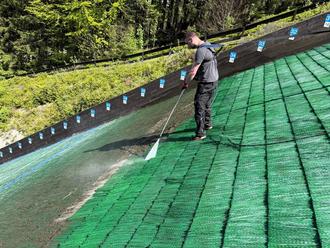 Neben den in jedem Jahr notwendigen Reinigungsarbeiten rund um das Skiheim, den Sportplatz und den Schanzen, wo altes Laub und der Schmutz von Wind und Wetter beseitigt werden, wird das Skiheim einen ausführlichen Frühjahrsputz unterzogen und es werden notwendige Reparaturen erledigt. Zusätzlich war dieses Jahr aber noch die Reinigung des Mattenbelages der Aufsprunghänge der Kinder und der großen Kottmar-Schanze mittels Hochdruckreiniger notwendig. Diese aufwändige und zum Teil akrobatisch anmutende Arbeit wurde von Familie Krause in einem viertägigen Einsatz. Im großen Hang erfolgt die Reinigung durch Zuhilfenahme einer Winde und einer Seilsicherung.