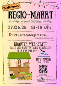 Der Regio-Markt ist von 13:00 bis 18:00 Uhr geöffnet und bietet regionale Produkte an: Erdbeeren aus Zittau, Obst und Gemüse, Backwaren, Käse, Wurst und Fleisch, Säfte, Öle, Wein, Gin und Wolle.