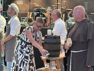 Im Anschluss zogen 42 Vereine aller Couleur aus der Gemeinde Kottmar in das große Festzelt auf den Volkshausplatz ein. Frau Evamaria Quarch als 1. Stellvertretende Bürgermeisterin eröffnete, bedingt durch die krankheitsbedingte Abwesenheit unseres Bürgermeisters, den 31. Eibauer Bierzug und wünschte allen Besuchern und Veranstaltern ein schönes Festwochenende. Im Anschluss erfolgte der Parallelbieranstich der Brauereien. Danach ging es weiter mit den Jolly Jumpers im Festzelt und der „Viva la Electronica“ vor dem Volkshaus.