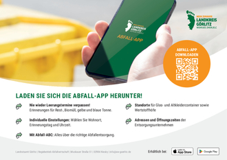Wir möchten Sie informieren, das es Änderungen im Bereich Abfallkalender gibt. Dieser wird ab nächstem Jahr leider nicht mehr an die Haushalte verteilt. Alternativ stellt der Landkreis Görlitz eine Abfall-App zur Verfügung, welche Sie sich kostenlos herunter laden können und somit alle wichtigen Termine und Informationen erhalten. Auch das Beantragen des Sperrmülls ist bereits seit längerem online möglich.