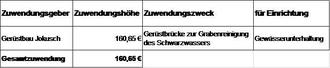 Der Gemeinderat Königswartha stimmt der Annahme von Zuwendungen nach § 73 Abs. 5 SächsGemO gemäß folgender Übersicht zu: