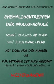 Herzlich laden wir am 27.10.2023 zu einem Treffen aller Ehemaligen ein. Ab 18 Uhr ist die Aula für alle reserviert, für die Handzeichen, Hausschuhe und Hofpause nicht mehr zum Alltag gehören, die sich aber gern an Ihre Schulzeit erinnern. Wir sind neugierig auf eure Geschichten.