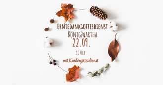 Am 22. September feiern wir um 10:00 Uhr Erntedankfest in der Kirche Königswartha. Am Samstag, dem 21. September wollen wir ab 9:00 Uhr unsere Kirche schmücken. Kränze, Ranken, Blumen und Erntegaben können am Samstag Vormittag bis 10:00 Uhr in der Kirche abgegeben werden. Wir freuen uns sehr über Erntegaben, Blumenspenden und fleißige Hände, die unsere Kirche für das Erntedankfest schmücken.