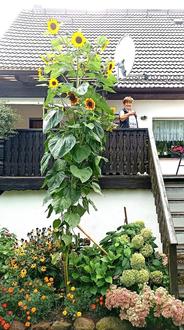 Bärbel und Uwe Ruzicka, als „Herausforderer“, können auf ihre Sonnenblume (3,10 m hoch und 17 cm Stammumfang (Foto und Text im August-Amtsblatt) sehr stolz sein, denn sie ist mit nur einer einzigen riesengroßen Blüte schon eine Besonderheit; ihr gebührt für die Höhe zwar nur „Platz 3“ aber für den Stammumfang unbestritten „Gold“!