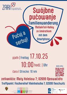 A tule hišće wutrobne přeprošenje na nazymske pućowanje za swójby. Beim gemeinsamen Wandern können sie ihre Sorbischkenntnisse verbessern – Herzliche Einladung zur Familienwanderung im Herbst: