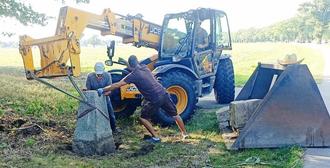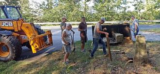 Dem voraus ging das Anheben des etwa 1000 kg schweren Grenzsteins durch Mitglieder des Geschichtsvereins und Helfer aus Wartha und Königswartha.