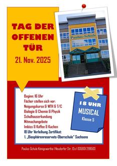 | 21.11. | 16:00 Uhr | Tag der Offenen Tür an der Paulus-Schule |