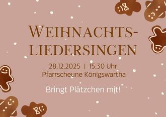 Am Sonntag nach dem Weihnachtsfest laden wir herzlich zum Weihnachtsliedersingen ein. Bei Kaffee, Kinderpunsch und Plätzchen wollen wir die schönen, althergebrachten Weihnachtslieder singen, weihnachtliche Geschichten hören und miteinander ins Gespräch kommen. Wir freuen uns, Sie am 28.12.2025 um 15:30 Uhr in der Pfarrscheune (Kirchweg 1) begrüßen zu können. Pfr. Mahling