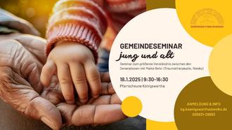 | 18.01. | 9:30 Uhr | Gemeindeseminar jung & alt in der Pfarrscheune |