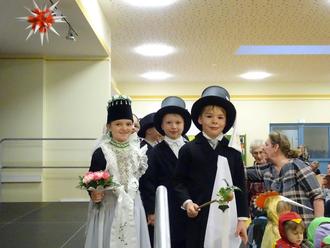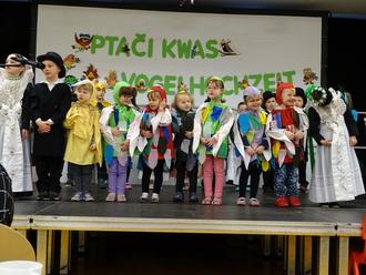 „Wsitke ptacki su zas tu“ erklang es im ersten Lied, mit welchem die Kinder der Storchengruppe und der Krabatgruppe das Publikum zu ihrem Vogelhochzeitsprogramm am 25. Januar 23 begrüßten. Mit Liedern und Gedichten wünschten die kleinen bunten „Vögel“, die Hochzeitsgäste und das Brautpaar allen Anwesenden ein frohes neues Jahr und erzählten von der Not der Vögel im Winter. Sperling, Buntspecht und Amsel berichteten davon, wie sie den ganzen Sommer lang Ungeziefer vernichteten und für uns sangen. Nun kamen sie und baten um Futter. Natürlich erhielt jeder kleine Vogel seine Körner. Zum Dank für die Fütterung durften sich die Kinder der CSB Kindertagesstätte „Zwergenland“ in Königswarha über eine süße Überraschung freuen.