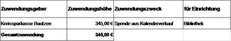 Der Gemeinderat Königswartha stimmt der Annahme von Zuwendungen nach § 73 Abs. 5 SächsGemO gemäß folgender Übersicht zu: