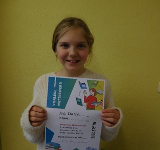 Während unsere Klassen sich langsam zum schulischen Lesewettbewerb rüsten, wurde der Leselöwen-Vorlesewettbewerb an der Brigitte-Reimann-Stadtbibliothek schon am 24.01.2024 durchgeführt. Es nahmen Viertklässler aus umliegenden Grundschulen und Hoyerswerda teil. Unsere Grundschule meldete den besten Vorleser aus der Klassenstufe 4 an. So wurde Mia Kracht aus der Klasse 4b nominiert. Sie las aus ihrem Lieblingsbuch „Das zaubernde Klassenzimmer“ in der 1.Runde vor. In Runde 2 bekam sie einen Text aus einem für sie fremden Buch zum Vortragen. Dies gelang ihr hervorragend und so erreichte sie den 1. Platz. Wir gratulieren herzlich zum Sieg!!