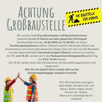 | 17.+ 18.02. | 9:00 Uhr | Kinderbibeltage in der Aula der Paulus-Schule |