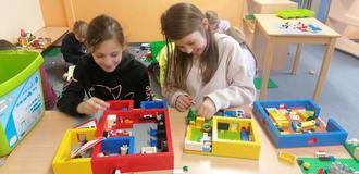 Im Hort ist es oft das leise Klicken der bunten Legosteine, das konzentriertes Arbeiten ankündigt. Was auf den ersten Blick wie freies Spielen wirkt, hat einen großen pädagogischen Wert: Das Bauen und Konstruieren mit Lego fördert bei Kindern sowohl die Kreativität als auch das logische Denken. Speziell dafür wurde im Hort eine große bunte Legoplatte vertikal an der Wand befestigt.