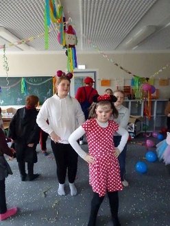 Zur Faschingsdisco kamen die Mädchen und Jungen in tollen und kreativen Kostümen. Der Höhepunkt war eine gemeinsame Polonaise durch das ganze Haus.