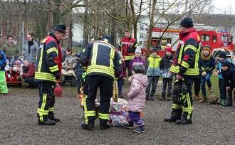 Eine schöne Tradition in der Kita ist der Besuch der Freiwilligen Feuerwehr aus Königswartha am Aschermittwoch, um gemeinsam mit allen Kindern der Kita die Girlanden und Luftschlangen zu verbrennen. Natürlich durfte der Blick in das Innere des Feuerwehrautos nicht fehlen …