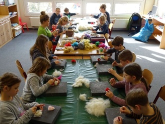 Mit Hilfe der Mitarbeiterinnen der Naturschutzstation östliche Oberlausitz entstanden beim Trockenfilzen sehr verschiedene nützliche Dinge.
