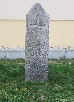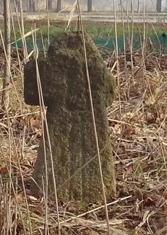 Dieser Stein steht im Garten des Grundstückes Warthaer Straße 18a und hat die noch lesbare Inschrift “Georg Michauk, 28. Januar 1835”.