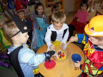 Am Faschingsdienstag trafen sich alle farbenfroh verkleideten Kinder zum großen Faschingsfest in ihren Gruppenräumen. Bei lustigen Spielen galt es, die Preise der Zamperrunde zu gewinnen, bei der Kinderdisco das Tanzbein zu schwingen und zwischendurch von den vielen Naschereien zu probieren, welche der Zampergang am Vortag eingebracht hatte.