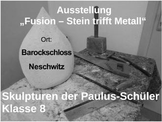 „Vom 1. bis zum 3. November 2023 haben wir, die 8 Klässler der Paulus-Schule Königswartha, ein Projekt Namens: „Fusion - Stein trifft Metall'“ mit unserer Klassenlehrerin Frau Schelzig in Angriff genommen. Aufgabe war es im Zweierteam eine Skulptur aus Ytong-Steinen zu gestalten und dabei ein Element aus Metall mit einzubauen. Einerseits sollten zwei verschiedene Materialien miteinander „fusionieren“, also zusammengebracht werden, andererseits mussten wir Schüler im Team ebenso „fusionieren“, indem eine gemeinsame Skulptur erschaffen werden sollte. Dabei mussten wir aufeinander achten, Ideen zusammen entwickeln und gemeinsam an der Umsetzung und Ausführung arbeiten.