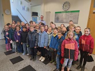 Ein spannender Ausflug führte die Schülerinnen und Schüler der zweiten Klasse der Grundschule „Bjarnat Krawc“ am 25.03.2025 in das Rathaus von Königswartha. Im Rahmen des Sachunterrichts, in dem ihre Heimatgemeinde behandelt wird, besuchten sie den Bürgermeister Herr Nowotny, um mehr über seine Aufgaben und die Arbeit im Rathaus zu erfahren.