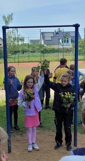 Anschließend waren alle Grundschüler zum „Maibaumwerfen“ eingeladen.