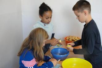 Mit Pinsel und Farbe bunte Welten entstehen lassen, die das Zimmer zuhause schmücken oder mit Zwirn und Faden, Säge und Hammer sein handwerkliches Können erproben, dafür gab es im vergangenen Schuljahr Gelegenheit in unserem Ganztagsangebot. In der Kinderküche wurden verschiedene zubereitete Kreationen in gemütlicher Runde verkostet. Die von den Kindern ausgewählten Rezepte bestanden dabei den „Geschmackstest“ und sie sammelten diese für zukünftige Feste im liebevoll gestaltetem Rezeptbuch.