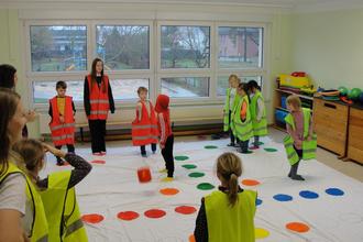 Immer dienstags wurden die Paulusschüler voller Vorfreude erwartet, welche die Kinder mit kreativen neuen Spielideen begeisterten. Als „Spieletester“ konnten die Kinder Neuland erkunden und sie bekamen die Chance im menschengroßen „Mensch-Ärgere-Dich-Nicht“ anderen spielerisch den Platz zu „stibitzen“. Zudem staunten alle, wie einfache Trinkbecher in den Händen der Kinder ein einzigartiges Konzert erklingen ließen. Der einstudierte „Cupsong“ hatte Hitpotential.