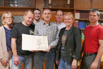 Die Kirchgemeindevertretung Königswartha empfängt die Chronik derer von Rabenau. Bildnachweis: A. Simon.