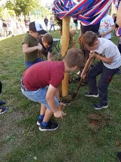 und damit das traditionelle „Maibaumwerfen“ an unserer Grundschule. Am 15. Mai 2024 erfuhren die Schüler der 3. Klassen an Stationen Wissenswertes über Bräuche und Sagen der Sorben aus unserer zweisprachigen Region. Alle Schüler der Grundschule waren anschließend zum „Maibaumwerfen“ eingeladen. Mit sichtlicher Freude tanzten sie um den Maibaum. Der Bändertanz der 3. Klasse bildete einen schönen Abschluss. Danach gruben die Jungen engagiert und kraftvoll den Baum aus. Beim Lauf um die Krone gewann Luca Matheo das Rennen und wählte Adele zur Maikönigin.