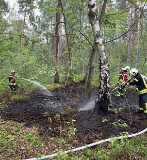 Am 21.05. wurden wir durch die Automatische Waldbrandüberwachung zu einer unklaren Rauchwolke alarmiert. Nach kurzem Suchen bestätigte sich die Lage und es brannten ca. 5x6m Waldboden.