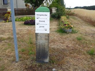 sowie dem speziellen Richtungspfeil versehen. Da auf zahlreichen Wegweisersäulen die Entfernungen zu den angegebenen Orten nicht mehr erkennbar waren, habe ich sie digital vermessen. Auch wurden Verbindungen, die der Großflächenlandwirtschaft zum Opfer fielen, nicht mehr aufgeführt. Finanziert wurde diese Maßnahme von der Gemeindeverwaltung Königswartha. Bisher erhielten 22 Wegweisersäulen ein neues Outfit. Gegenwärtig finden letzte Beschriftungsarbeiten an sechs Säulen im Bereich Oppitz, Commerau und Eutrich statt. Damit sind unsere Wegweisersäulen vorbildlich restauriert. Ich hoffe, dass dieser, nicht eben preisgünstige, historische Zustand lange anhält.