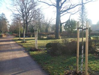 Nichtsdestotrotz wurden bereits umfangreiche Nachpflanzungen vorgenommen. Unter anderem wurde die Allee aus Pyramidenhainbuchen (Carpinus betulus fastigiata) mit vier Jungbäumen erweitert. Optische Highlights soll ein Blauglockenbaum (Paulownia tomentosa) sowie eine Hopfenbuche (Ostrya carpinifolia) bieten. Auch Rotahorn (Acer rubrum) wurde am westlichen Wegenetz zur Begrenzung von Grabfeldern gepflanzt. Das im Sommer erweiterte Feld der naturnahen Baumgräber wurde um zwei Zierquitten (Cydonia onlonga) und einen Blasenbaum (Koelreuteria paniculata) ergänzt.