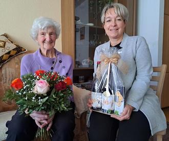 Trotz mehrerer Schicksalsschläge in ihrem langen Leben, bewahrte sich Helga Bittner auch ihren Humor. Witze lese und erzähle sie liebend gern. Entscheidend für diese fröhlich Disposition sei außerdem ihr Lebensmotto: „Ich lasse mich nicht unterkriegen.“ Viel zu lachen gab es daher auch am 11. Januar als Bürgermeisterin Christina Buchheim der 95-Jährigen persönlich zu ihrem Ehrentag gratulierte.