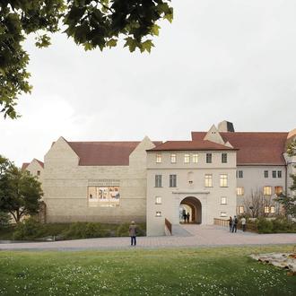 Im Inneren des Schlosses werden künftig alle öffentlichen Ausstellungsbereiche barrierefrei erschlossen. Eine klare, als Rundgang angelegte Wegeführung gewährleistet eine gute Orientierung und ein angenehmes Besuchererlebnis. Die Neugestaltung der Schlossinsel überzeugt durch ihren sensiblen Umgang mit dem historischen Kontext. Das Planungsteam aus Architekten und Landschaftsarchitekten greift historische Bezüge auf, ohne in reine Rekonstruktion zu verfallen. Ein zeitgemäß interpretierter Renaissancegarten schafft zusätzliche Aufenthaltsqualitäten und bietet Raum für Museumsvorträge und Workshops im Freien. Der Schlosshof wird klar gegliedert und klimaresilient gestaltet. Zusätzliche Baumpflanzungen und die Verwendung regionaler Bodenmaterialien schaffen ein stimmiges Gesamtbild im Zusammenspiel mit der historischen Bausubstanz.