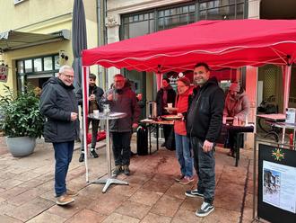 Bei kleinen in- und ausländischen Snacks wie Kaffee, Punsch, Kuchen und Falafel, wuchs die Spendenbereitschaft der Köthenerinnen und Köthener über sich hinaus. „Derzeit sind es 407,93 Euro, die in der Zeit unserer Spendenaktion von 11 Uhr bis 14 Uhr zusammengekommen sind“, freut sich Pfarrer Horst Leischner, der die Spendenaktion im Namen der St. Jakob Gemeinde Köthen auf die Beine gestellt hat. „Und das ist nur das Geld des Spendenglases. Viele Bürgerinnen und Bürger sagten mir, sie hätten bereits Geld auf unser Spendenkonto überwiesen. Ich bin überwältigt. Wir freuen uns über jeden einzelnen Cent, der entweder über solche Aktionen oder auf dem Spendenkonto eingeht.“, fährt der Pfarrer der Kirchengemeinde St. Jakob in Köthen (Anhalt) fort.