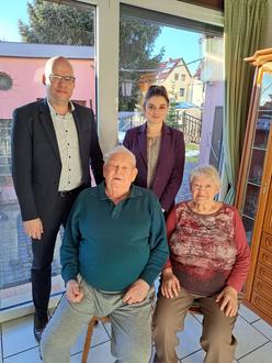Zur Eisernen Hochzeit gratulierten der stellvertretende Landrat Volker Krüger (hinten links) und Köthens stellvertretende Oberbürgermeisterin Stephanie Schönau (hinten rechts).