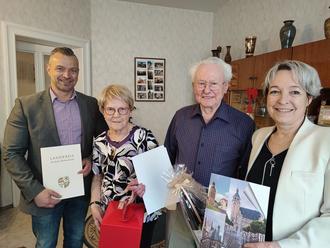 „Na freilich doch“, antwortet Ernst Schmezko mit schelmischem Lächeln auf die Frage, ob er sich auch heute noch, nach nunmehr 65 gemeinsamen Jahren, für seine Gisela entscheiden würde. Das Ehepaar feierte am 26. März 2025 seine Eiserne Hochzeit, ein Anlass, zu dem auch Köthens Oberbürgermeisterin Christina Buchheim im Namen der Stadt Köthen (Anhalt) und der Landrat des Landkreises Anhalt-Bitterfeld, Andy Grabner, ihre herzlichsten Glückwünsche überbrachten. Kennengelernt haben sich der in der Slowakei (Hochwies) geborene Ernst Schmezko und seine Herzensdame bei der Arbeit in einem Maschinenbauunternehmen im thüringischen Artern, wo er als Schweißer und sie als Konstrukteurin tätig waren. Später zogen beide nach Köthen (Anhalt), wo sie bei Förderanlagen nicht nur beide eine berufliche Zukunft, sondern auch entsprechenden Wohnraum fanden. Mit Sohn Frank gründete das Paar 1963 eine Familie. Heute zählt das Paar zudem drei Enkelsöhne und vier Urenkel. Insbesondere das Aufwachsen der Enkelsöhne haben der inzwischen 88-Jährige und seine 86-jährige Frau intensiv begleitet und daran viel Freude gehabt, bestätigt auch Schwiegertochter Carla Schmezko. Während Ernst Schmezko für die praktischen Dinge zuständig war, Fahrräder oder andere Alltagsdinge reparieren, hat Gisela Schmezko viel bei Schulaufgaben, insbesondere bei Mathematik unterstützt, so die Jubilarin.