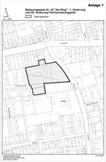 Der Geltungsbereich der 1. Änderung des Bebauungsplanes Nr.44 umfasst eine Größe von ca. 1,04 ha. Das Änderungsgebiet des Bebauungsplanes erstreckt sich: