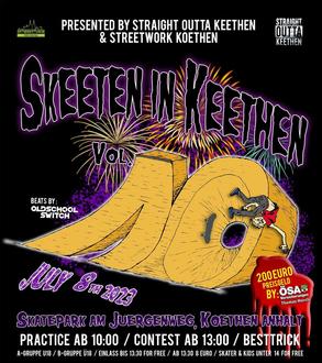 Am Samstag, dem 8. Juli, fliegen im Skatepark am Jürgenweg wieder Bretter und deren Besitzer*innen durch die Luft. Zum mittlerweile zehnten Mal heißt es dann „Skeeten in Keethen“. 2010 wurde der Skate-Contest ins Leben gerufen – damals noch als Privatveranstaltung – heute hat sich der Wettbewerb zum größten seiner Art in ganz Sachsen-Anhalt gemausert. Hauptverantwortlich für dieses Wachstum ist der 2021 gegründete Straight outta Keethen e. V., der unter anderem auch regelmäßig Skateboard-Unterricht für Köthener Kinder und Jugendliche anbietet. Zum Jubiläum hat sich der Vorsitzende, Andreas Thiele, etwas ganz Besonderes ausgedacht: „Seit Januar baue ich an einem ‚skatebaren Objekt‛, einer Rampe aus Holz, die eine große Zehn bildet.“ Die Bauzeichnung ist bereits auf dem Plakat zur Veranstaltung zu sehen, wer die echte Rampe sehen oder benutzen möchte, sollte am 8. Juli zum Jürgenweg kommen, wo ab 10 Uhr zunächst von jedermann geübt werden kann.