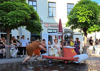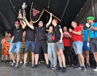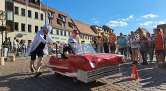 Erstmals seit 2014 war der Köthener Marktplatz Ende Juni wieder Schauplatz für das traditionelle Seifenkistenrennen des Studentenclubs der Hochschule Anhalt. Die tollkühnen Männer (und Frauen) in ihren rasenden Kisten stellten sich einem Hindernisparcours, der fahrerisches Geschick, Wurfgenauigkeit und viel Durst einforderte. Zum Jubiläum der 50. Studententage hatten sich die Teilnehmerinnen und Teilnehmer bei ihren Gefährten und den dazugehörigen Outfits einiges einfallen lassen. So donnerte die Familie Feuerstein in ihren Steinzeitmobil ebenso über das Kopfsteinpflaster wie Lucky Luke und die Daltons, deren Planwagen allerdings ohne Pferde auskommen musste. Vor der Augen mehrerer hundert Zuschauerinnen und Zuschauer konnte letztlich das Team „VT“ den Gesamtsieg einfahren, bei dem nicht nur Schnelligkeit, sondern auch Optik von Mannschaft und Kiste sowie Unterhaltungswert des Laufs eine Rolle spielten.
