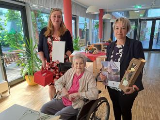 Vor Ort – aber nicht weniger überraschend – wurden außerdem Glückwünsche von ihrem Ururenkel überbracht, dessen Geburt für September erwartet wird. Daher gab es statt Blumen oder Grußkarten sanfte Tritte durch den Babybauch für Frau Lehmann. Klassisch mit Urkunden und Präsenten gratulierten außerdem Köthens Oberbürgermeisterin Christina Buchheim und die persönliche Referentin des Landrates Doreen Scheffler dem Geburtstagskind.