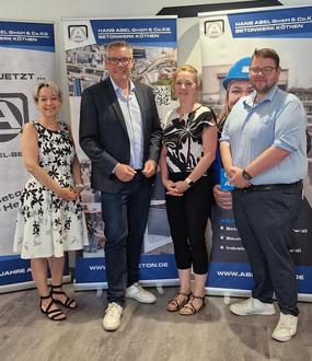 Am 1. Juli, dem Tag des 100-jährigen Unternehmensjubiläums, besuchten Oberbürgermeisterin Christina Buchheim, Baudezernent Max Schuchardt und die Wirtschaftsförderin der Stadt Köthen (Anhalt), Anja Jope, die Hans Abel GmbH & Co. KG Betonwerk Köthen. Die neue Mitarbeiterin im Bereich der Stadtentwicklung stellt sich aktuell bei Unternehmen der Region vor. „Als Ansprechpartnerin für alle Fragen rund um Standortentwicklung, Fördermöglichkeiten, Innovationen und Fachkräftesicherung möchte ich mich mit großem Engagement dafür einsetzen, Köthen als attraktiven Wirtschaftsstandort weiter zu stärken und die Zusammenarbeit zwischen Unternehmen, Institutionen und der Stadt zu fördern“, betont Frau Jope.