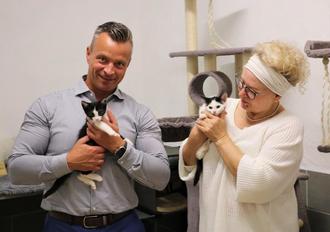 Andy Grabner und Regina Minasch-Elze in der Katzenkinderstube im Köthener Tierheim