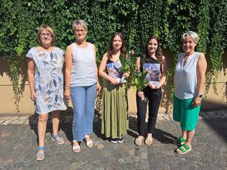 (Berufs-)Schulbank adé, hieß es Ende Juli für Julia Heise (2. v. r.) und Lisa Kowalski, die beide ihre dreijährige Ausbildung zur Verwaltungsfachangestellten bei der Stadt Köthen (Anhalt) erfolgreich abgeschlossen haben. Die Personalratsvorsitzende Ilona Häckel (v. r.) sowie die Ausbildungsverantwortliche der Personalabteilung, Anke Kraus, und Oberbürgermeisterin Christina Buchheim gratulierten den Mitarbeiterinnen und wünschten ihnen viel Erfolg im weiteren Berufsleben. Das setzen die beiden Absolventinnen bei der Stadtverwaltung fort: Frau Heise verstärkt zukünftig das Ordnungsamt als Sachbearbeiterin im Themengebiet Brandschutz, während Frau Kowalski im zuständigen Fachamt zur Ansprechpartnerin für die städtischen Schulen wird.