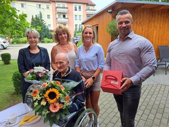 Doppelten Grund zur Freude gab es Ende Juli im Seniorenpflegeheim „Am Wasserturm“: Am 19. Juli feierte Ilse Seidler ihren 103. Geburtstag, wenige Tage später, am 26. Juli, tat es ihr Georg Schulz gleich. „Das ist für uns etwas ganz Besonderes, zwei Bewohner in diesem stolzen Alter bei uns zu haben. Das ist in der Geschichte unseres Heims absolut einmalig“, betont Leiterin Konstanze Eisenhuth, die für die beiden besonderen Geburtstagskindern wieder eine herzliche Feierstunde auf die Beine gestellt hatte.
