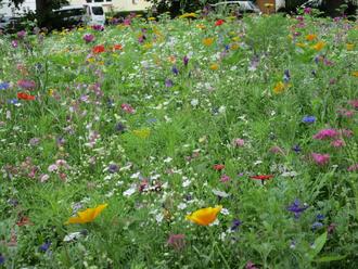 Derzeit erblüht am ODG-Platz, auf der Grünfläche am Bahnhof und auf dem Vorplatz der Kindertagesstätten Max&Moritz/Pinocchio eine bunte Mischung aus einjährigen Blumenarten. Diese sind zwar überwiegend nichteinheimische, aber attraktive, standfeste und klimataugliche oft als Sommerblumen bekannte Arten, die als Nektarquelle für die heimische Insektenwelt und mit ihren Samen auch für Vögel interessant sind. Diese Mischungen blühen seit Ende Juli bis zum Frost. Am Dreieck Hohle Tore, in der Geuzer Straße sowie in der Fasanerieallee sind Mischungen aus verschiedenen ein- und mehrjährigen Wiesenblumen ausprobiert worden.