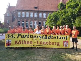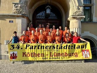 Seit 1990 wurden damit 8 500 km zwischen unseren Partnerstädten absolviert. Insgesamt sind in all den Jahren 333 Köthener und Lüneburger Läufer bei der Überbringung der Grußbotschaft von Stadt zu Stadt beteiligt. Mit einigen netten Worten übergab Gernot Panitz dann in Lüneburg angekommen, ein kleines Gastgeschenk von unserer Oberbürgermeisterin Christina Buchheim, an die Lüneburger Oberbürgermeisterin Frau Kalisch. Gemeinsam wurde der 34. Partnerstädtelauf beim abendlichen Zusammentreffen in freundschaftlicher Atmosphäre ausgewertet und über den neuen Termin im kommenden Jahr gesprochen.