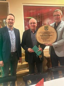 40 Jahre war Hans-Georg-Zubiks (Foto Mitte) in der Kommunalpolitik aktiv. Als engagierter Gemeindevertreter und Vorsitzender der Gemeindevertretung von Kolkwitz leistete er einen großen Beitrag zur positiven Entwicklung der Gemeinde. Zum 31. Dezember 2024 hat er sein Mandat als Gemeindevertreter niedergelegt. Der Vorsitzende René Kochan (l.) und der Bürgermeister Karsten Schreiber (r.) bedankten sich herzlich für den Einsatz.
